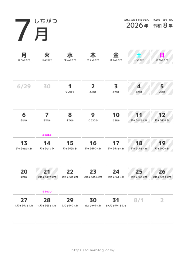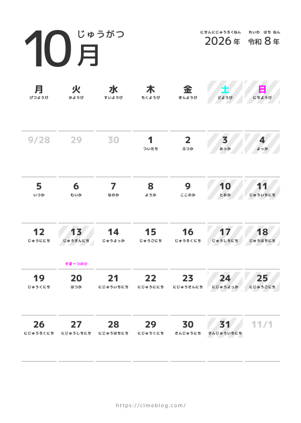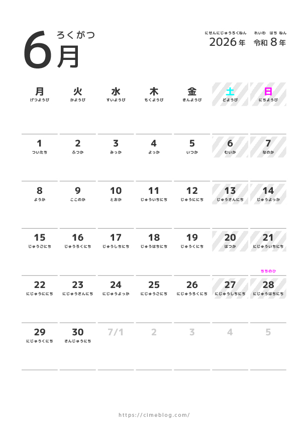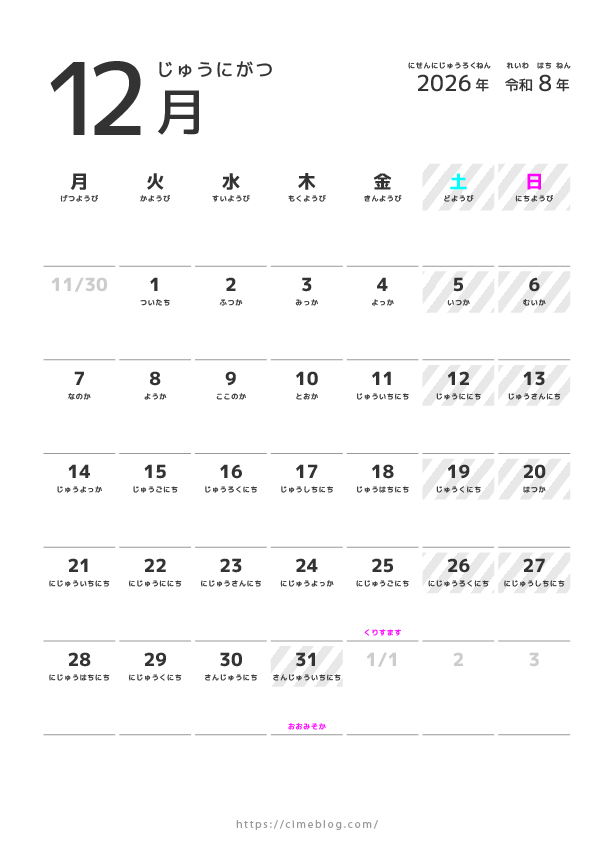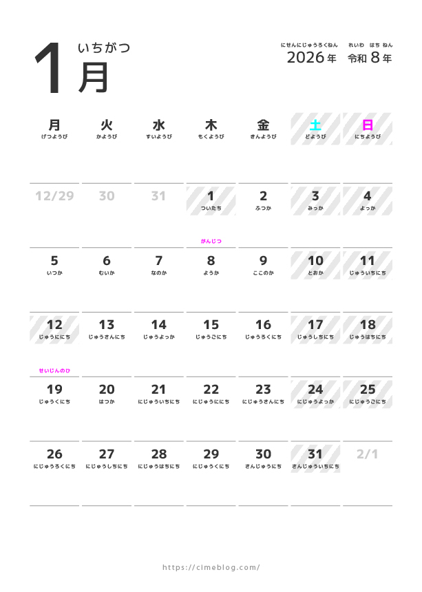 2026年1月から12月までのカレンダーをまとめてダウンロードしたい方は、こちらから無料でダウンロードできます。