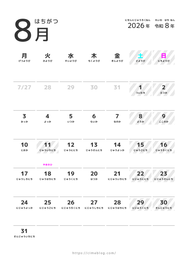 - 日付の読み方付き